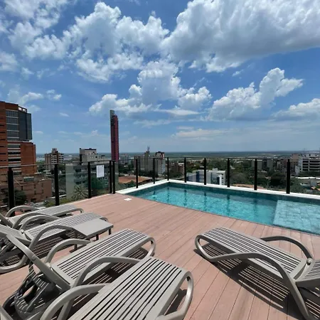 The 79 m² Modern Apartment In Las Mercedes - Asuncion is located around a 25-minute walk from the Costanera de Asuncion and offers Wi-Fi for either business or leisure. This spacious apartment features a rooftop swimming pool and a sunbathing terrace for guests' comfort.